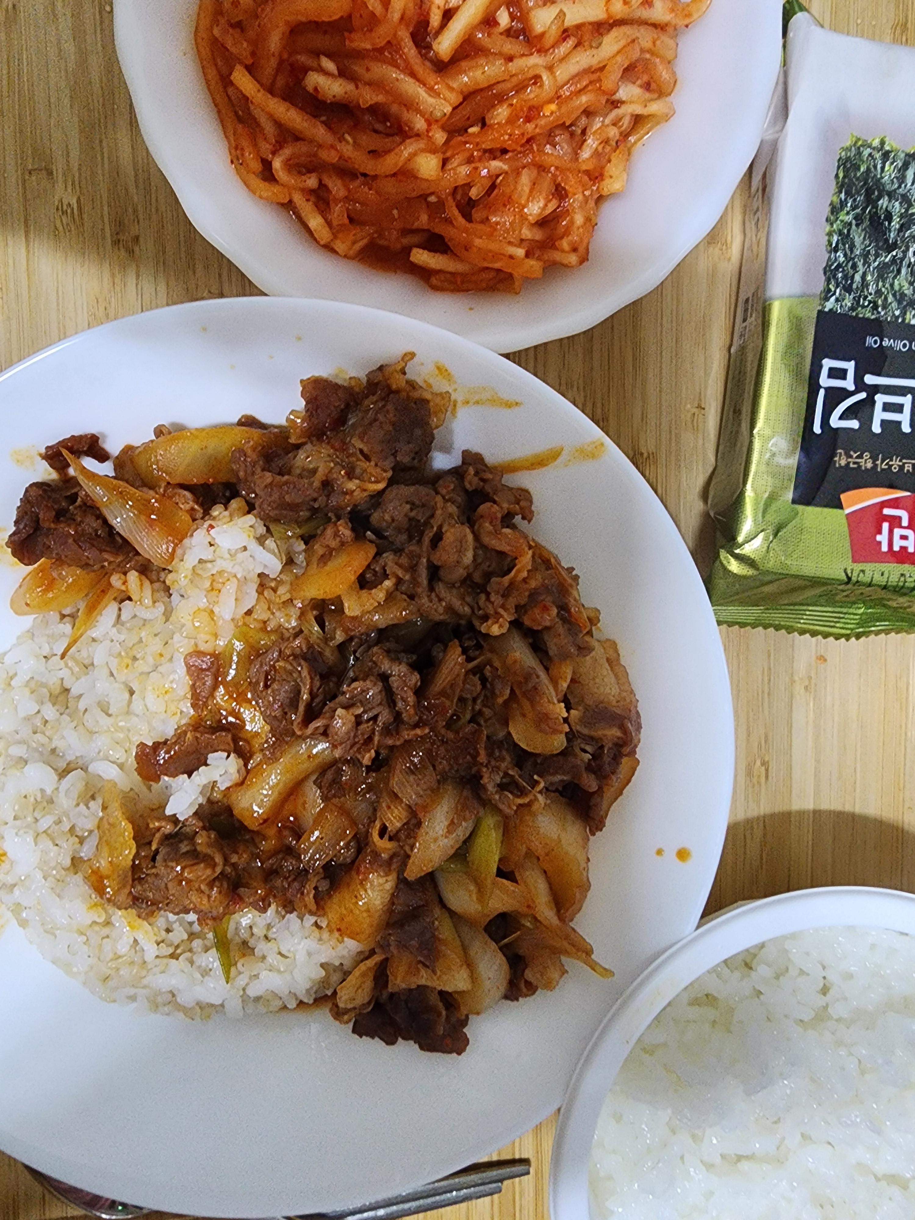 고기 사서 대량으로 볶은 후 햇반이랑 먹기!
